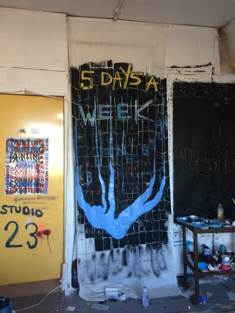JO: Coming up soon is the Bankley Open Call and Studios from 12- 14 October, in Manchester. I’m also showing work in an exhibition at LIMBO space in Peckham on 18 October, and at a charity exhibition ‘The A5 Show’ at the Koppel Project in London 19 November – 21 December. GIANTS was the last time I worked on a massive stretched canvas, and my work is quite different now. I usually work un-stretched, partly because of practical ease, in transportation, and the time and hassle of making a big stretcher when I just want to be getting on with painting. I’m quite keen now on un-stretched cotton sheets, making smaller works such as little painting books out of canvas, all because of the way the painting can be moved. I also like posting work to people and I’m setting up a collaborative postal project soon.